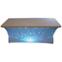 Manufactured from a double stitched elasticated material that allows the scrim to stretch around the table, they create a material finish that can either be used to blackout or be illuminated for some creative effects.
